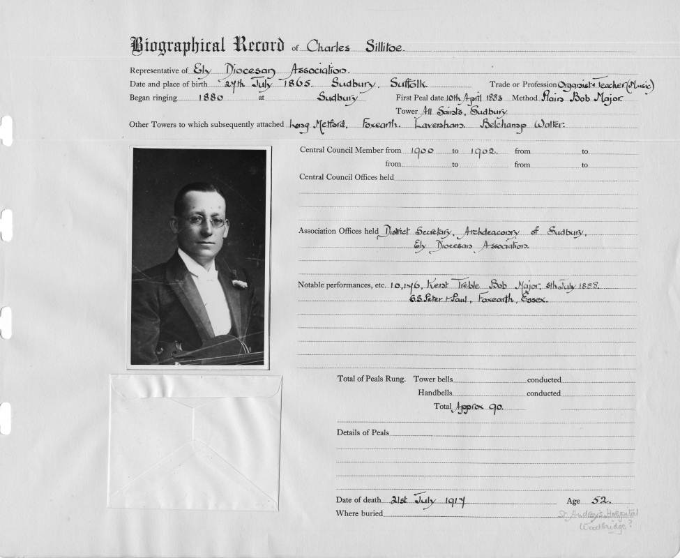 Places:Place of Birth: Sudbury, Suffolk Began ringing at: Sudbury Tower from biographical record etc.: Long Melford, Foxearth, Lavenham, Belchamp Walter |