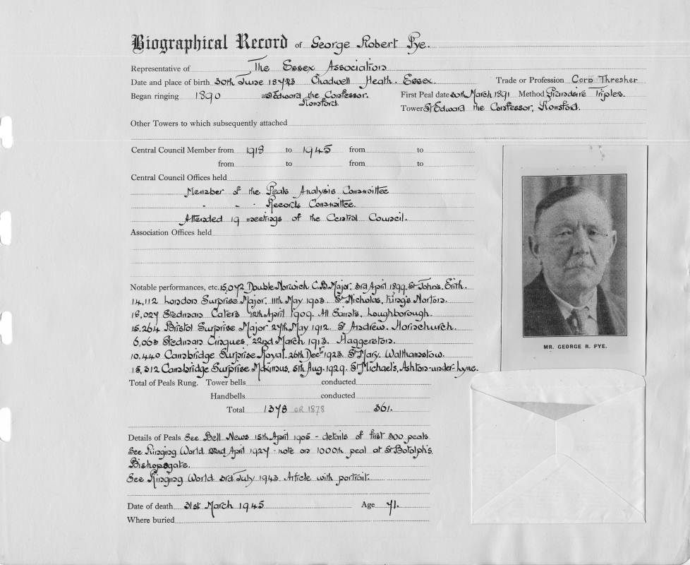 Places:Place of Birth: Chadwell Heath, Essex Began ringing at: St Edward the Confessor, Romford Tower mentioned in obituary: Ilford |
