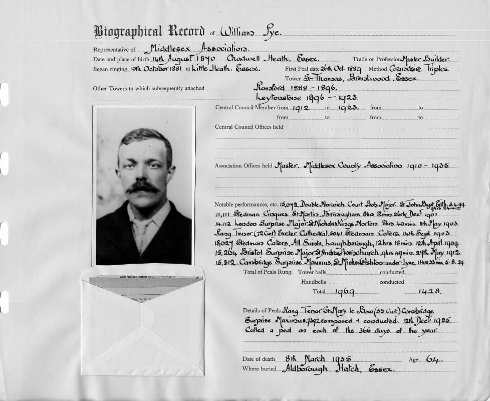Places:Place of Birth: Chadwell Heath, Essex Began ringing at: Little Heath, Essex Tower from biographical record etc.: Romford 1888-1896, Leytonstone 1896-1923 Tower mentioned in obituary: Leytonstone |