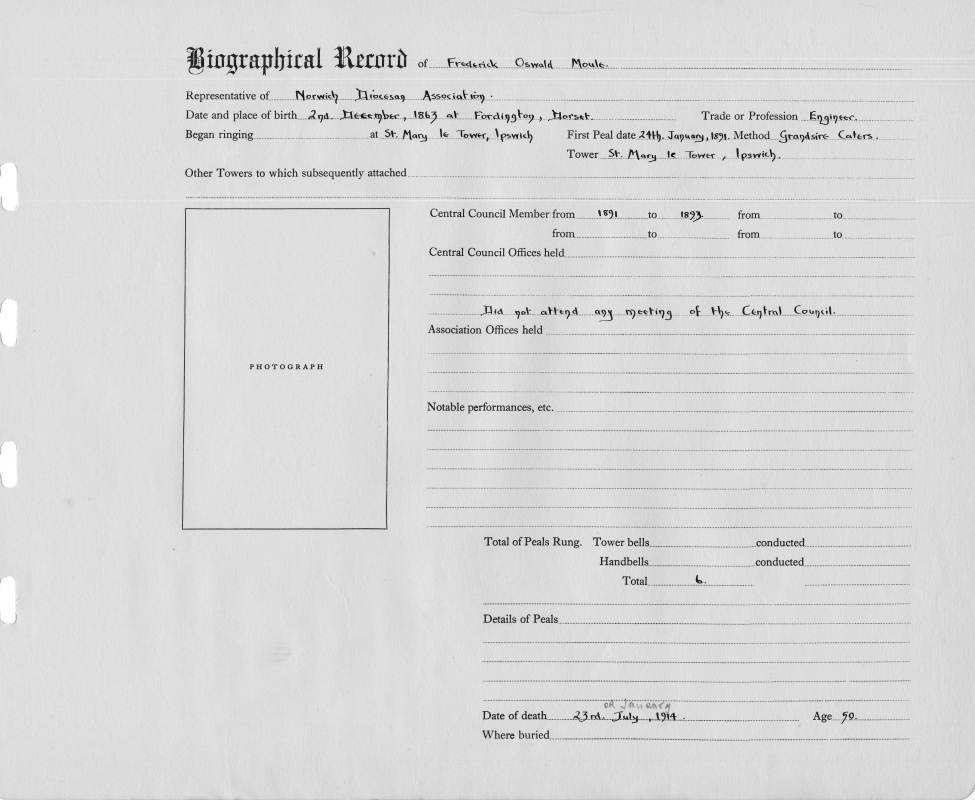 Places:Place of Birth: Fordington, Dorset Began ringing at: St Mary le Tower, Ipswich |