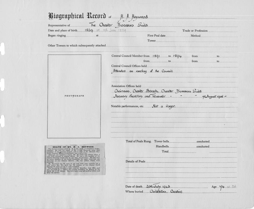 Society offices held: Chairman, Chester Branch, Chester Diocesan Guild; Honorary Secretary and Treasurer - 7th August 1905- |