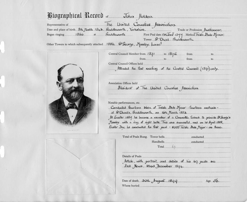 Places:Place of Birth: Saddleworth, Yorkshire Began ringing at: Saddleworth Tower from biographical record etc.: 1886, St. George, Mossley, Lancs |
