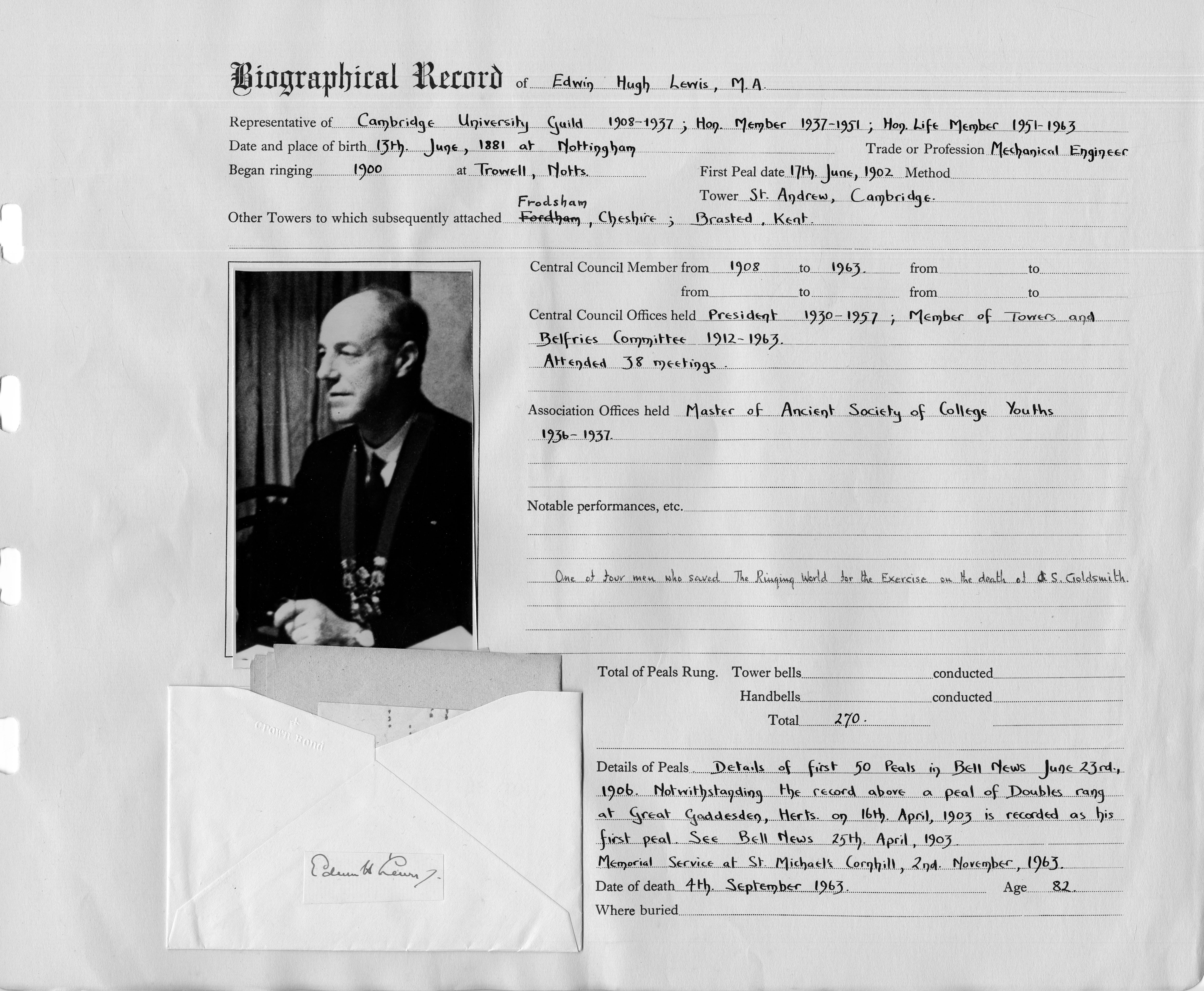 | 1938 | Central Council of Church Bellringers | Honorary Member |